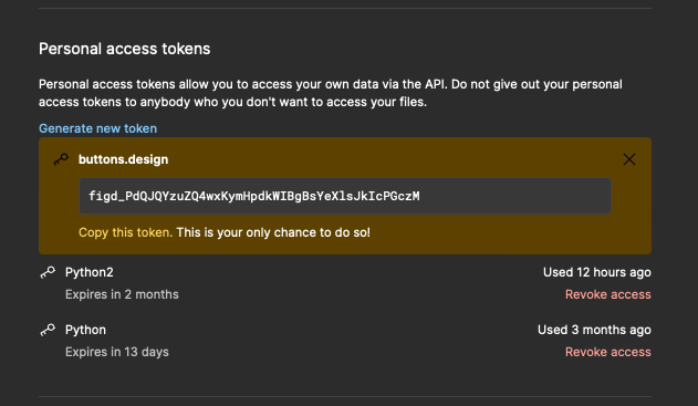 All done! Now you should have your API Key, and your File ID. You’re ready to link your design system to Buttons – click the link below to navigate to the Dashboard and enter your keys.